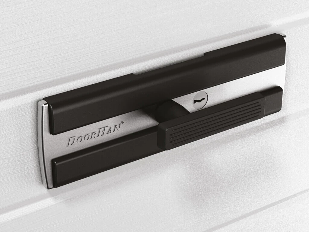 Механический замок позволяет блокировать полотно ворот в закрытом положении как изнутри помещения, так и со стороны улицы.